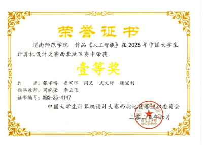 第18届“中国大学生计算机设计大赛”西北地区赛于2025年5月16日至20日在兰州信息科技学院举行,西北赛区的参数作品类别包含软件应用与开发、微课与教学辅助、人工智能应用、数媒静态设计、计算机音乐创作等11个类别。best365计算机学院通过校赛推送30余件作品参加西北地区赛的决赛,经过激烈角逐,最终获得西北地区赛一等奖3项、二等奖10件、三等奖20件。best365荣获大赛优秀组织奖。