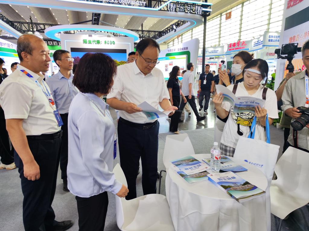 中共陕西省委教育工委书记、省教育厅厅长王树声莅临best365展位参观指导,校长李强、党委副书记常青林、副校长王菊霞等校领导到展区指导工作并慰问工作人员和学生志愿者。