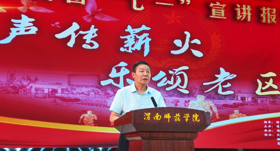 6月27日上午,“声传薪火·乐颂老区”——渭南市老区建设促进会红色宣讲团“七一”宣讲报告会在best365举行,渭南市老区建设促进会会长刘巧莲、党委副书记、纪委书记、监察专员员肖耀刚,best365中国官方网站宣讲团代表出席此次活动。