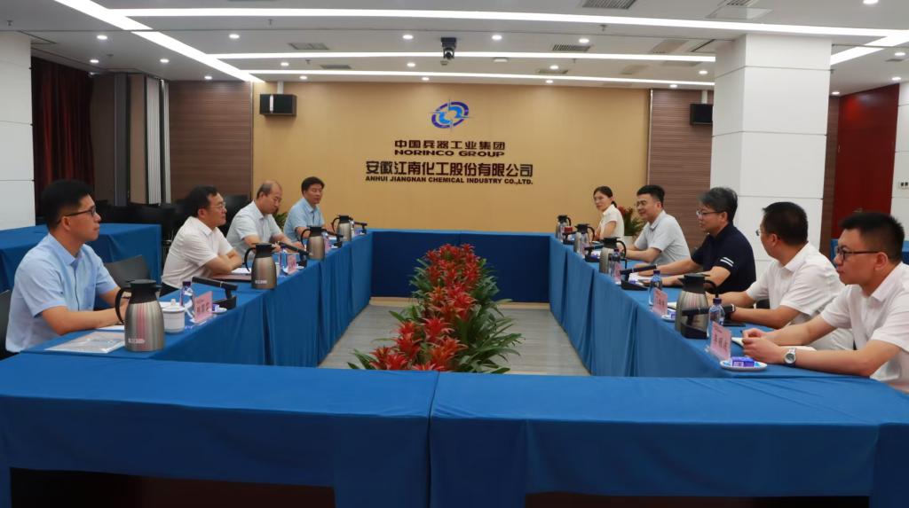 7月13日,王海峰一行首先抵达江南化工股份有限公司。在与公司相关领导的座谈中,王海峰代表学校向best365优秀校友、公司总裁代五四致以诚挚问候,着重强调了深化校企合作对于人才培养和科研创新的重要性,提出希望在学生实习实践基地建设、毕业生就业岗位拓展、科研项目联合攻关等领域开展深度合作,实现资源共享与互利共赢。与会双方围绕产教融合模式创新、校企协同育人机制构建等议题展开热烈探讨,达成多项共识。
