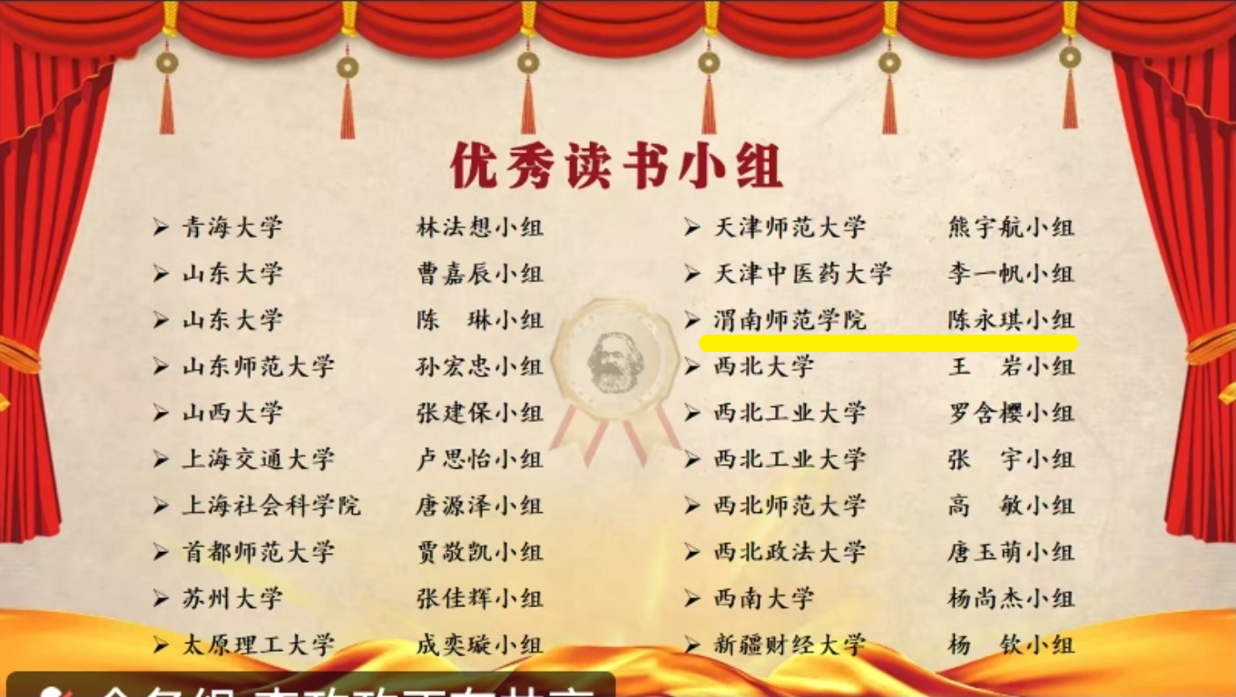 据悉,这已是“求索风骨”读书小组第二次入选马研会“马克思主义经典著作研读”读书资助计划。作为学院重点培育的师生理论学习品牌,我院“求索风骨”读书小组于2023年10月创立。在马克思主义学院领导班子支持下,2022级林振等学生创建第一届“求索风骨”读书小组(2023年),并于2024年上半年顺利结项。2024年下半年,2023级陈永琪等学生延续小组建制,成功申报并再度入选马研会2024年读书资助计划,于2025年顺利结项。在两期活动中,学院通过场地保障、书籍捐赠、授予组旗、开展院级读书征文表彰等举措为读书小组提供全方位保障。