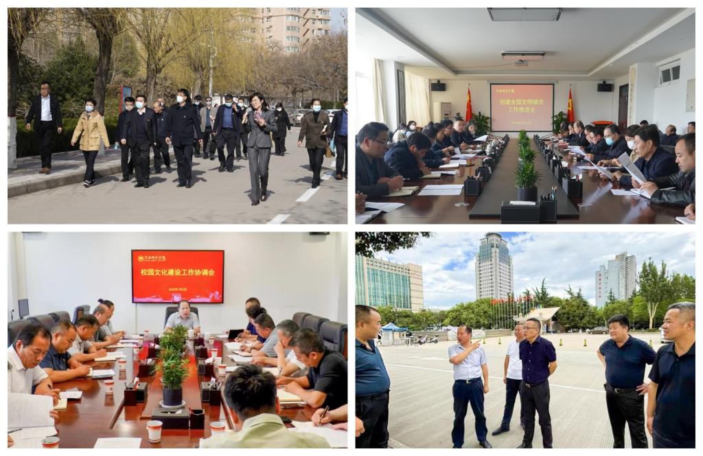 校党委会、精神文明建设工作领导小组做到定期研究部署学校文明创建工作,文明创建工作办公室及时召开工作安排会、推进会,系统部署、统筹安排、一体推进、有序开展全国文明城市和省级文明校园创建工作。为总结各单位文明创建工作中好的做法和成效,印发文明创建《工作简报》60余期,营造“人人参与创建、人人为创建做贡献”的良好氛围。