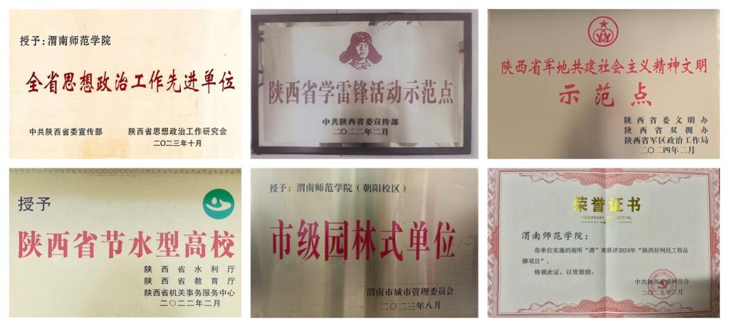 学校先后荣获“全省思想政治工作先进单位”“全市学习党的创新理论先进单位”“陕西好网民工程品牌项目”“陕西省平安校园”“陕西省节水型高校”“陕西省军地共建社会主义精神文明示范点”“陕西省学雷锋活动示范点”等荣誉称号。