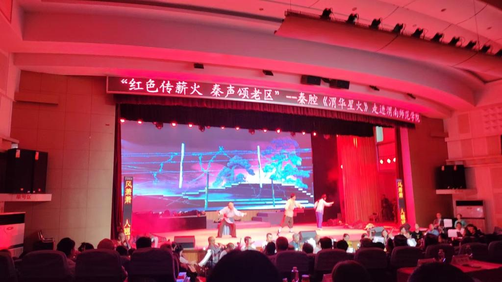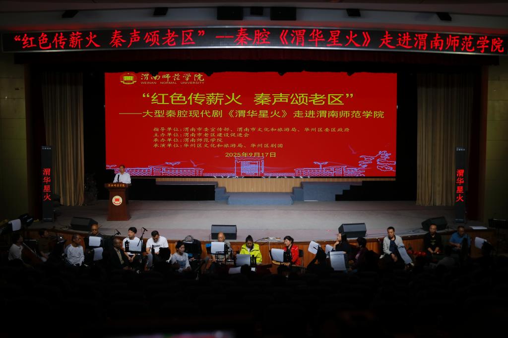 9月17日晚,“红色传薪火 秦声颂老区”——大型秦腔现代剧《渭华星火》走进best365中国官方网站巡演活动在best365陶然楼演艺厅拉开帷幕。渭南市副市长刘宝琳,渭南市委宣传部副部长陈卓,渭南市老区建设促进会会长刘巧莲,best365党委副书记、纪委书记、监察专员肖耀刚,党委副书记汪勇,副校长卢爱刚,党委委员、宣传部部长李明敏等相关领导参加活动。