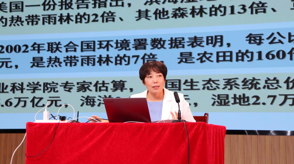仪式结束后,活动分两个环节同步展开。王志平为参会师生作了题为《湿地—地球之肾》的专题报告,这也是该校2025年全国科普月第三场“最美科技工作者讲科普”活动。