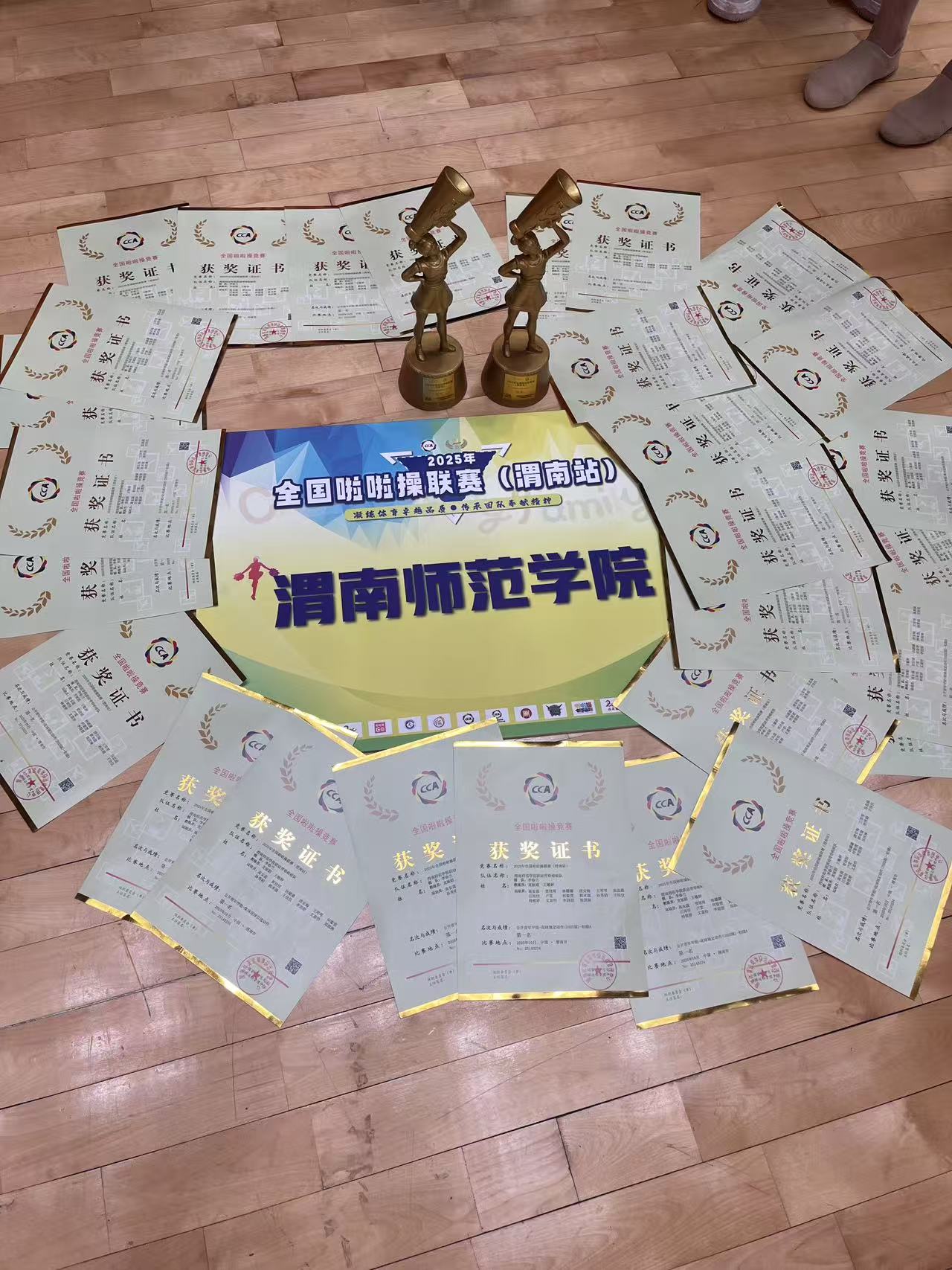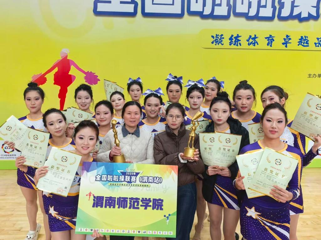 在学院的大力支持和领导下,由教练员王敏婷、龙丽娟带领的校啦啦操代表队凭借扎实的技术功底与出色的团队协作,一举斩获两大奖项:公开青年甲组花球规定动作(2025版)-初级A冠军、公开青年甲组集体花球自选动作冠军,同时获得体育道德风尚奖。
