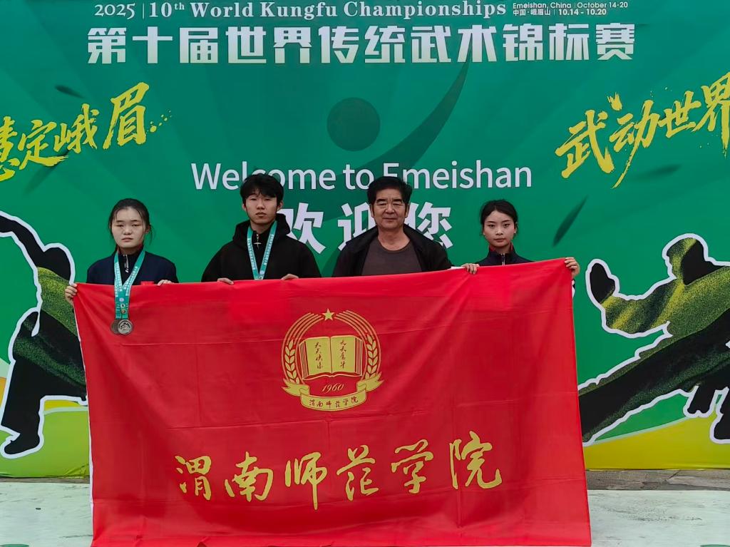 在校领导的关怀和大力支持下,由体育学院院长李春兰任领队,王军、蔡龙两位教师任教练员,从校武术队选派三名运动员参加此次比赛。他们凭借精湛技艺与稳定发挥,斩获2金、2银、2铜的优异成绩,在世界级舞台上展现了中国传统武术的魅力与师院学子的风采。