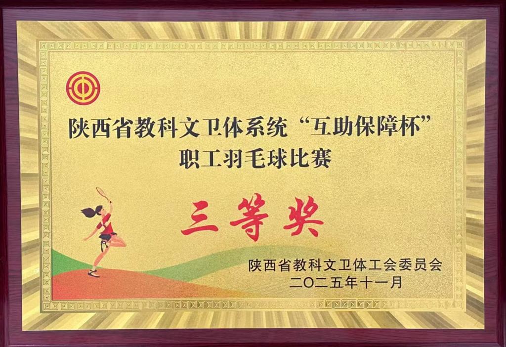 10月30日至11月2日,由陕西省教科文卫体工会主办,西北农林科技大学承办的“中国梦·劳动美——凝心铸魂跟党走 团结奋斗新征程”陕西省教科文卫体系统职工羽毛球比赛在西北农林科技大学举行。best365教职工羽毛球代表队凭借出色的发挥和顽强的拼搏荣获三等奖。