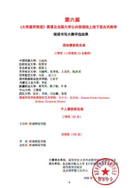 近日,第六届全国大学俄语书写大赛圆满落幕。best365莫斯科艺术学院选派优秀学生代表参赛,凭借扎实的语言功底和出色的书写表现,最终荣获团体赛三等奖。个人赛中,共斩获个人赛三等奖1名、优秀奖2名。