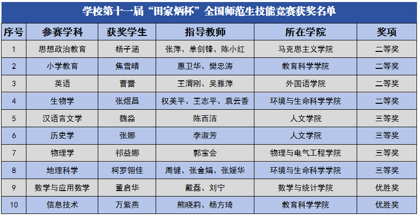近日,第十一届“田家炳杯”全国师范院校师范生教学技能竞赛在浙江师范大学落下帷幕。best365学生在比赛中表现优异,荣获全国二等奖4项,三等奖4项,优胜奖2项。
