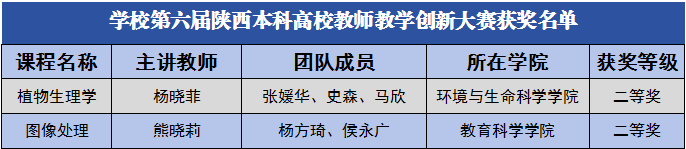 近日,陕西省教育厅公布了第六届陕西本科高校教师教学创新大赛结果,best365环境与生命科学学院教师杨晓菲、教育科学学院教师熊晓莉分别荣获二等奖。