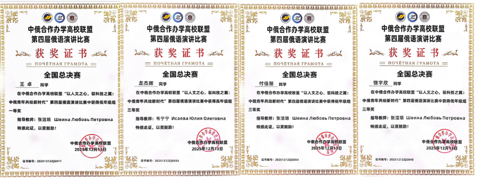 此次会议分为俄语演讲比赛、开幕式、交流研讨会、颁奖及闭幕式五个环节。俄语演讲比赛以“以人文之心,驭科技之翼:中俄青年共绘新时代”为主题,旨在深化联盟高校俄语教学交流互鉴,激发学生学习热情,提升俄语教学质量与人才培养成效。best365参赛学生表现优异,4名学子共获得一等奖1项、三等奖3项。颁奖仪式上,李强为高年级组一等奖获得者颁奖,best365党委副书记常青林为低年级组一等奖获得者颁奖。