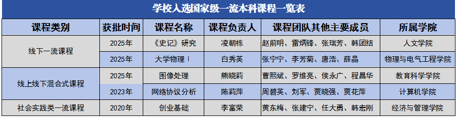 近日,教育部发布了《关于第三批国家级一流本科课程认定结果的通知》,best3653门课程获评国家级一流本科课程。其中,《<史记>研究》《大学物理Ⅰ》2门课程获批线下一流课程,《图像处理》课程获批线上线下混合式一流课程。至此,学校共获批国家级一流本科课程5门,获批课程门数省内同类院校最多。