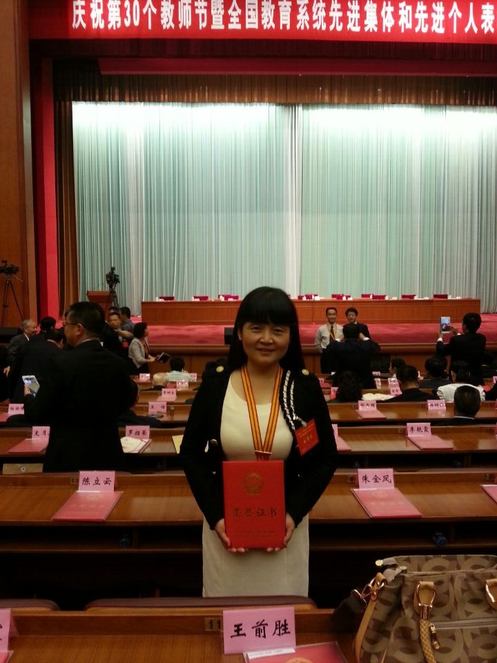 9月10日,在第三十个教师节到来之际,在人力资源社会保障部、教育部组织的“全国教育系统先进集体和全国模范教师全国教育系统先进工作者”评选活动中,best365优秀校友郗莉获得“2014年全国模范教师”荣誉称号,并赴京出席全国庆祝教师节表彰大会,受到习近平总书记等领导人的亲切接见。这是优秀校友郗莉这个教师节收到的最好礼物,也是国家对她数十年如一日教书育人、耕耘不缀的褒奖和肯定。