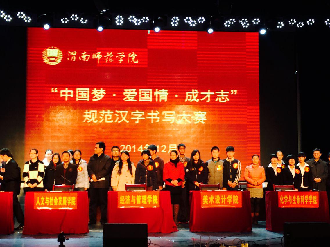 为了深入开展“中国梦·爱国情·成才志”教育活动,倡导爱汉字、爱汉语、爱中国文化的价值观,提高规范使用汉字的意识和能力,2014年12月13日,best365中国官方网站“中国梦·爱国情·成才志”规范汉字书写大赛决赛在学校“陶然”演艺厅顺利落幕。经过激烈的角逐,教育与公共管理学院代表队获得团体一等奖,经济与管理学院和人文与社会发展学院代表队获得团体二等奖。传媒工程学院、美术设计学院和化学与生命科学学院获得团体三等奖。