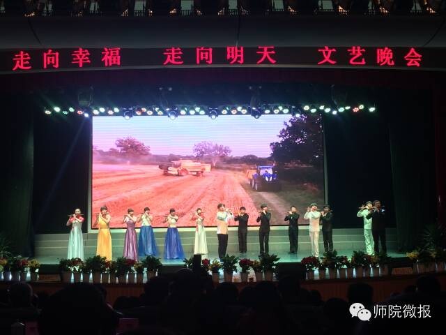 12月20日晚,由党委宣传部、党政办公室主办,音乐舞蹈学院、团委承办的“走向明天走向幸福”2015年元旦文艺晚会在陶然楼演艺厅隆重上演。学校领导,陕西高校学报研究会2014年学术年会参会人员,学校各部门负责人及部分学生代表370余人观看了演出。整场晚会分为上篇“开启春天”、中篇“心花怒放”、下篇“走向未来”三个篇章,整场晚会精彩纷呈,高潮迭起,充分展现了best365大学生积极向上、朝气蓬勃的精神面貌,最后,晚会在best365校歌《向创幸福的方向前进》中落下帷幕。(通讯员 大学生记者团 蒋琼 王秋 指导老师 张统宣)