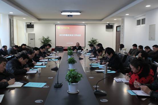 1月22日下午,学校在厚德楼四楼大会议室召开了2014年稳定安全工作总结暨2015年稳定安全工作部署大会,党委书记张金安,纪委书记任健,党委委员、组织部部长杨小渭及各单位党政负责人参加会议。会议由副院长李海龙主持。