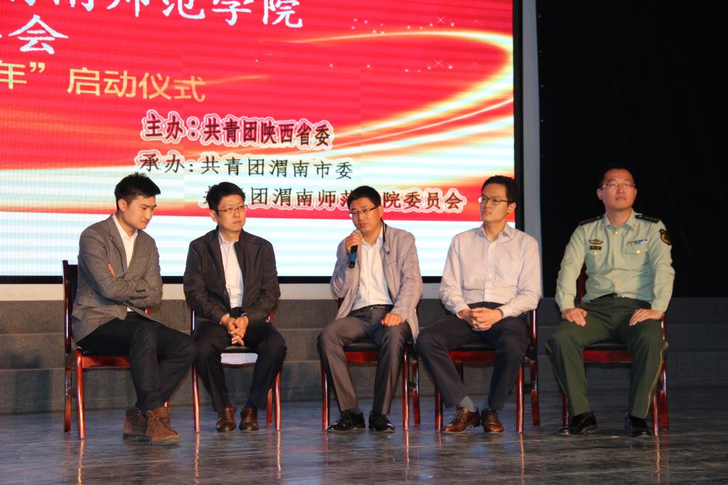 会中,中航工业集团自动控制研究所导航系统研发室主任李华分享了带领团队为我国国防力量研发贡献青春力量的故事;榆林市绥德县消防中队中队长李治危急当中救助女婴,女婴成功获救,“呐喊哥”的义举引起现场师生的点赞;陕西星火实业集团有限责任公司副总裁、星火物业总经理袁振涛积极参与社会公益事业,设立了"星火慈善基金"和"西安星火青少年发展扶贫基金",修桥铺路、扶贫帮困、支教助学等彰显了青春无悔的誓言;陕西广播电视台都市青春频道首席记者亢凯长期在一线采访,从工作角度讲述青春故事,弘扬社会正能量、传播真善美成为优秀青年记者的代表。咸阳市乾县梁山镇官地村村委会主仼冯伟作为一名大学生村官,带领村民创建"双矮苹果示范基地"1000多亩,创业故事的精彩与曲折引起观众阵阵掌声。大家用朴实的语言分享了自己的青春奋斗历程和感悟,活动通过现场访谈的形式,由主持人分别对话五位优秀青年,并与青年学子进行了互动交流。他们的故事催人奋进,集中展现了当代青年奋斗的青春底色,向上向善的价值追求,在青年学子中产生了热烈反响。