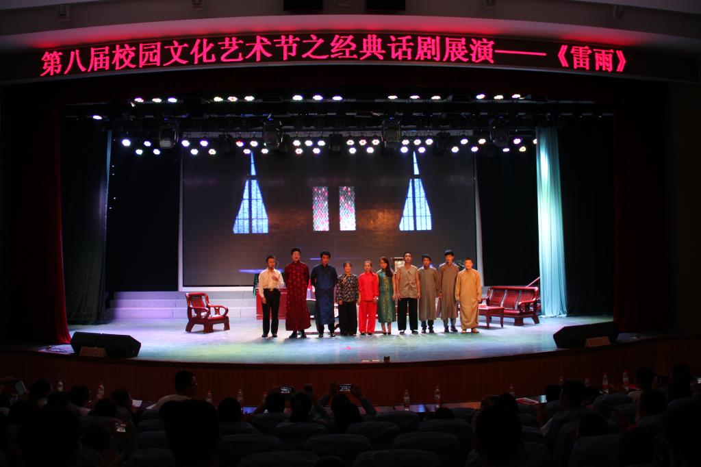 《雷雨》在幽暗的灯光下徐徐开幕,悠扬的音乐瞬间吸引了在场观众的目光。它再现了上个世纪的生活场景,同学们以精湛的演技使雷雨的每一个精彩片段清晰地展现在观众面前,展现了当代大学生的风采,赢得了在场师生的一致好评,本次演出圆满成功。