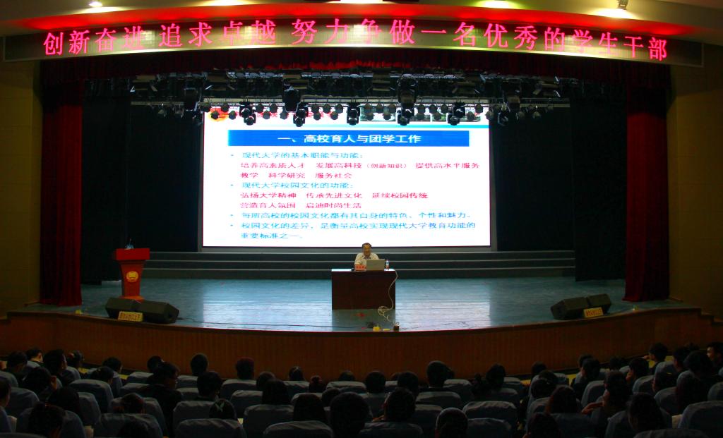 徐永胜在报告中指出,创新奋进是时代对当代青年的要求,创新突破是学生干部立足之本,追求卓越是学生干部挑战自我、超越自我的目标。他结合自身工作经历从新时期高校使命与团学工作新形势、高校学生干部的角色与定位、学生干部核心能力素质的培养等方面阐述了“什么是一个好的学生干部,如何成为一个好的学生干部”;他希望各级团组织通过第二课堂为学生搭建“文化育人、实践育人、环境育人”的三个平台,在总结经验的基础上探索性地构建富有本校特色的校园文化品牌体系;学生干部坐下来读书、静下来思考,在实践中锻炼,在总结中提高,不断改进工作方法,提高团队核心竞争力,为学校的发展做出自己的贡献。