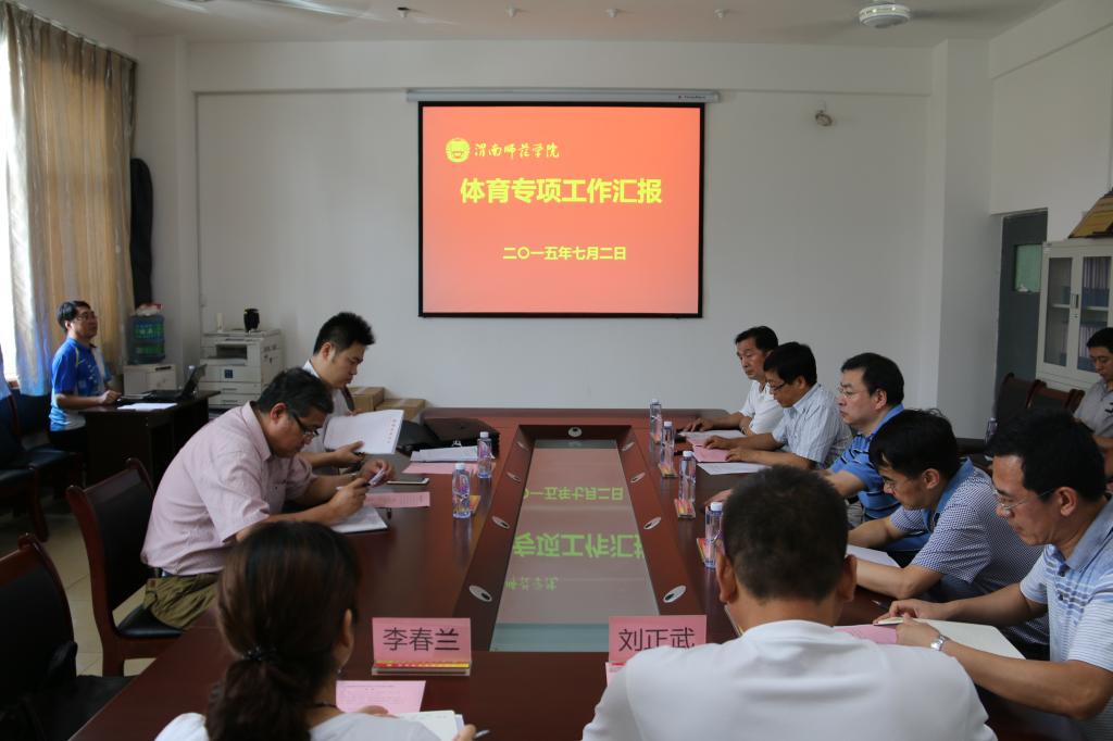 7月2日下午,教育厅体育工作督查组省学生体协常务副秘书长张原耕一行来best365检查指导工作。副院长程书强,体育学院院长张虎,教务处副处长刘军、席景奇,体育学院党政领导及体育教育专业建设负责人、实验室主任、教研室主任等参加了汇报会。会议由教务处处长李尧龙主持。