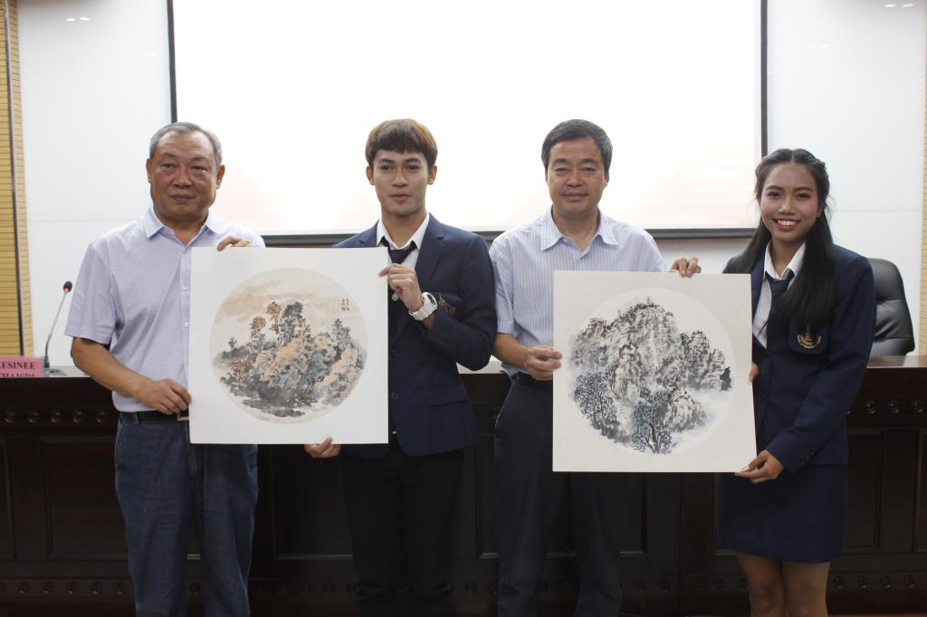 接着,院长丁德科发表重要讲话。丁院长对留学生在学习、生活等方面取得的成绩表示祝贺。他指出此次国际汉语留学生班的成功举办标志着best365与宋卡王子大学开始了实质性的合作,不仅增加了两校的友谊,而且增进了中泰两国人民的情谊。best365将派教师赴泰攻读泰语硕士,不断促进best365的双语教师课程建设。随后,张书记、丁院长为培训班学员颁发了结业证书,接着为优秀学生颁发了由美术设计学院提供的书画作品,激励学生努力学习,不断进步。之后与会领导、老师与泰国学生合影留念。