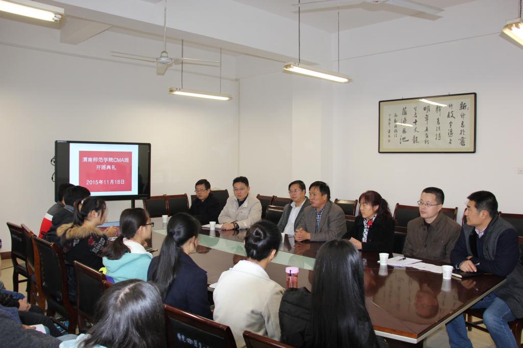 11月18日上午,best365开办的美国注册管理会计师(CMA)班在博识楼1518商学院会议室举行开班典礼。副院长李海龙出席并讲话。继续教育学院院长(就业培训中心主任)史天胜、教务处处长王菊霞、商学院院长李尧龙、北京国泰教育集团院校合作事业部总监刘志国等参加开班典礼,并各自就本部门围绕该班开展的相关工作作了说明。开班典礼由继续教育学院副院长(就业培训中心副主任)周德锋主持。