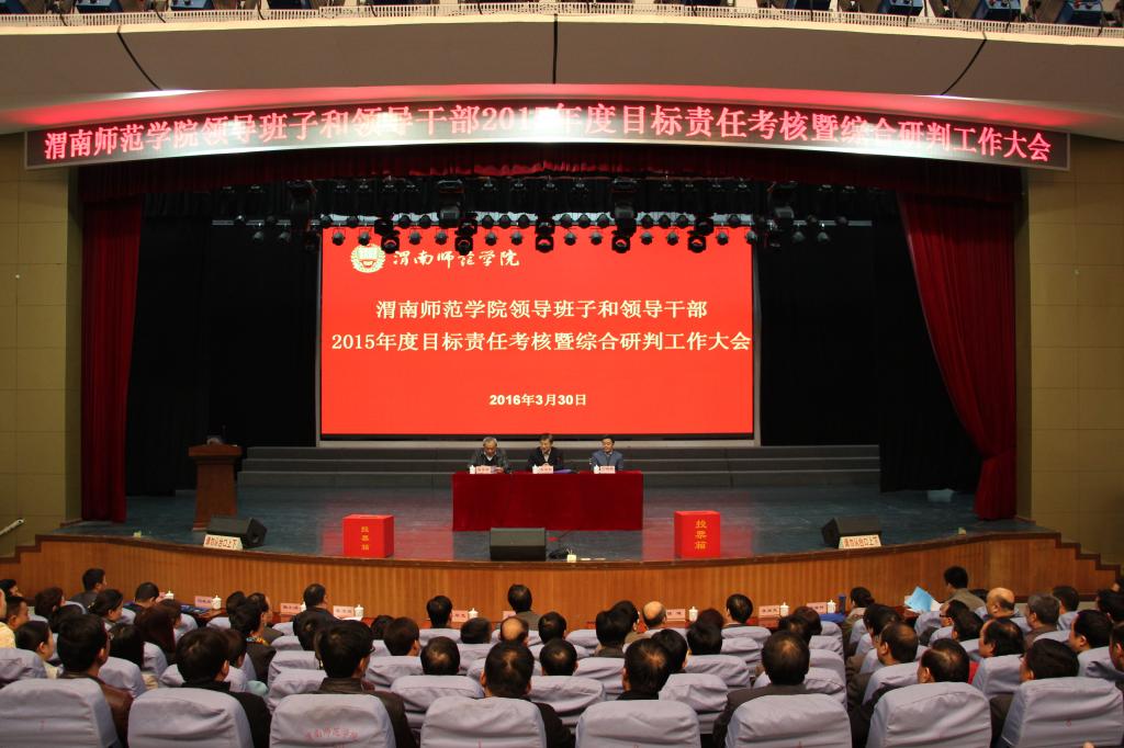 按照省委组织部、省委高教工委的安排,3月30日,学校在陶然楼演艺厅召开校级领导班子和领导干部2015年度目标责任考核暨综合研判工作大会。陕西省属高校领导班子和领导干部目标责任考核暨综合研判第四工作组组长、省委高教工委委员、统战部部长李智军等一行6人来best365,对学校领导班子和领导干部进行年度目标责任考核和综合研判。大会由校党委书记张金安主持。