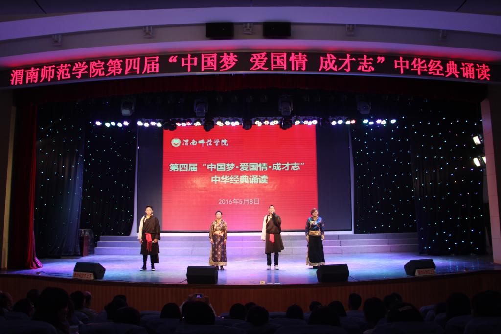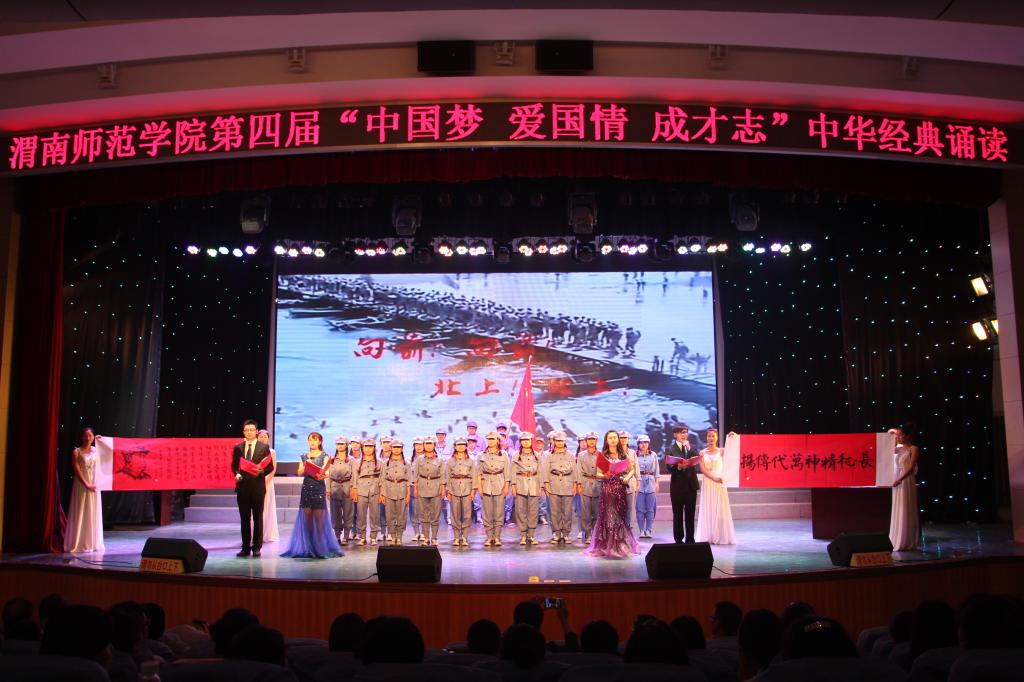 诵读国学经典,传承中华文明。为深入开展中华优秀传统文化教育,引导广大师生弘扬中华经典文化,传承千年历史文明,增强民族文化自信,营造民族优秀传统文化氛围,学校举办了第四届“中国梦·爱国情·成才志”中华经典诵读活动。