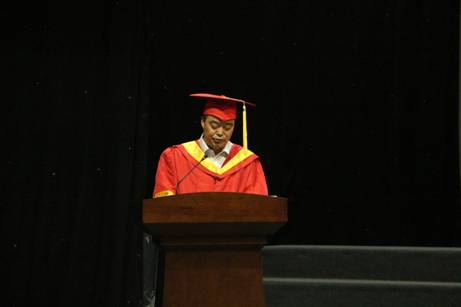 毕业生代表、在校生代表、教师代表分别作了发言。化学与环境学院的贾碧云同学代表全体毕业生发言,向学校的领导和老师,致以崇高的敬意和衷心的感谢,同时,也向在座的同学们表示忠心的祝贺和诚挚的祝福;人文学院的刘闫蕾同学代表在校生发言,向圆满完成学业的学长学姐表示最热烈、最诚挚的祝贺;教师代表管理学院李富荣教授作了发言,他祝贺16届毕业生顺利完成大学学业,祝福他们开启新的航程,走向社会,建功立业!