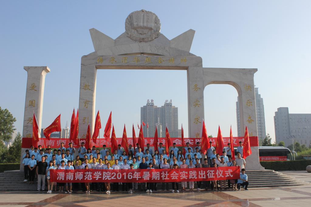 7月15日上午,best3652016年暑期社会实践出征仪式在渭华门前举行。校党委副书记赵伏友,校党委委员杨小渭,学工部部长王俊安,各二级学院党总支副书记,分团委、各团总支书记,各实践队带队老师及300余名实践队员参加了出征仪式。出征仪式由校团委副书记姚明亮主持。
