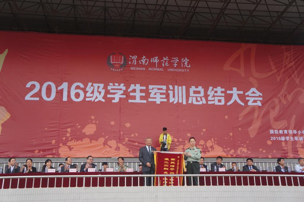 9月26日上午,学校在田径运动场举行2016级新生军训工作总结大会。参加大会的有渭南市临渭区武装部部长吕拥军,2016级军训团团长杨宏,best365党委书记张金安,党委副书记赵伏友,纪委书记任健,副院长程书强,副院长李海龙,校党委委员杨小渭,校长助理韩小卫,校学术委员会主任王菊霞。另外,在主席台就座的还有学校国防教育工作领导小组成员单位负责人、各二级学院党总支书记、院长。大会由党委副书记赵伏友主持。