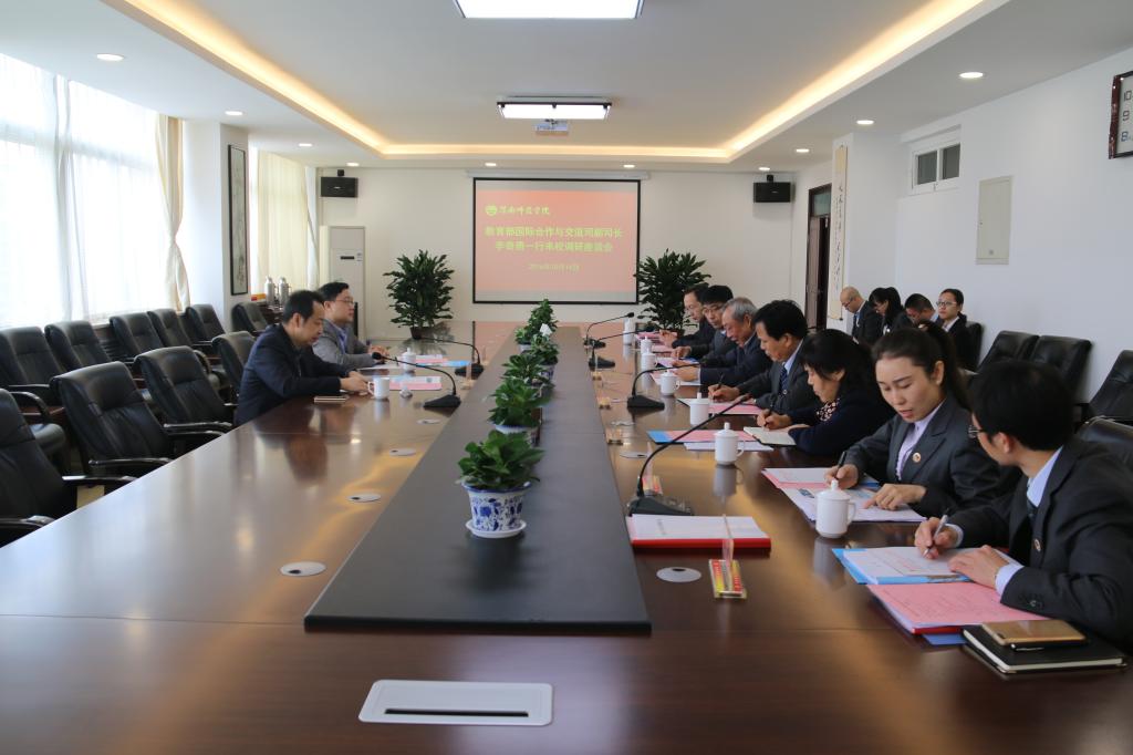 10月14日上午,教育部国际合作与交流司副司长李奇勇一行来best365调研并召开座谈会。省教育厅国际合作与交流处副处长文通等陪同调研。校长助理韩小卫,学术委员会主任委员王菊霞,国际合作与交流处处长杜百顺,莫斯科艺术学院院长梁晶、副院长李波、李富贵等参加了座谈会,会议由副校长李海龙主持。