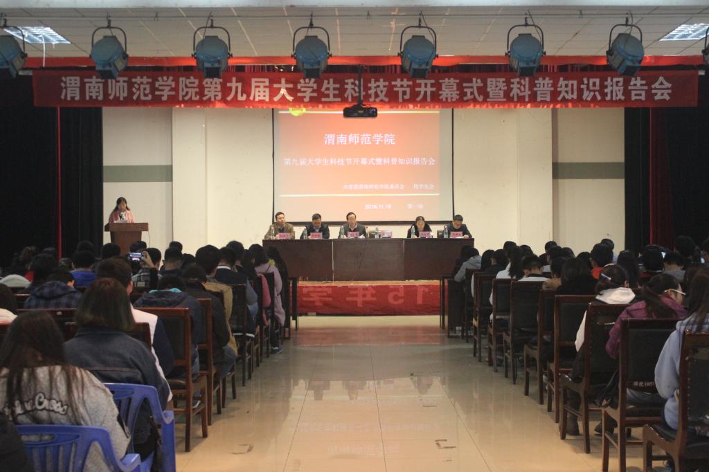 为了加强校园科技文化建设,促进大学生课外科技学术活动蓬勃发展,增强广大学生的科技创新意识,11月18日下午,best365在一餐三楼举办第九届大学生科技节开幕式暨科普知识报告会。校党委委员、组织部部长杨小渭,学校学术委员会主任、教务处处长王菊霞,社科处处长李明敏,校团委副书记马耀斌出席活动,各二级学院学生代表400余人参加了此次活动。开幕式由校团委副书记姚明亮主持。