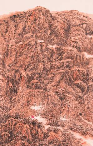 “延安精神”代表作品《延安金秋》。延安是革命圣地,是丝绸之路的起点,人类文明的火种在此点燃,华夏文明从此开启,延安精神在这里孕育、发扬、光大。作品表现的是延安金秋万物丰收、层林尽染的景象,表达了“坚定正确的政治方向,解放思想、实事求是的思想路线,全心全意为人民服务的根本宗旨,自力更生、艰苦奋斗的创业精神”的延安精神内涵。