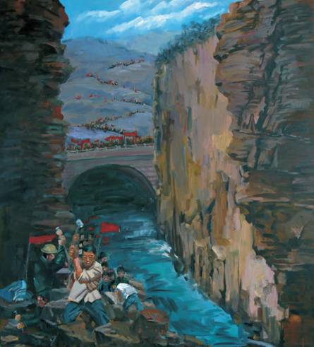 “红旗渠精神”代表作品《红旗渠》,作品以写实的手法表现修建红旗渠的劳动场景,表达了“自力更生、艰苦创业、团结协作、无私奉献”的红旗渠精神内涵。