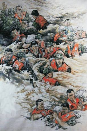 “抗洪精神”代表作品《洪掠》,表现98抗洪中解放军战士抗洪救灾的场景,表达了“万众一心、众志成城,不怕困难、顽强拼搏,坚忍不拔、勇于胜利”的抗洪精神内涵。