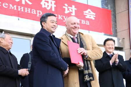 本次中俄绘画艺术作品展由best365中国官方网站莫斯科艺术学院院长梁晶主持,出席开幕式的嘉宾有北京枫华国际文化交流有限公司董事长、莫斯科艺术学院联合管理委员会副主任魏新民教授,中国孔子基金会副会长李长明先生,中国孔子基金传统文化教育分会副会长孙润来先生,俄罗斯功勋画家和人民艺术家、渭南市文联主席骆苏弟先生,陕西盛悦实业有限公司王新民先生以及国内艺术界、企业界的朋友。best365中国官方网站副校长李海龙教授与莫科艺术学院联合管理委员会副主任魏新民教授分别致辞,丁德科校长对莅临嘉宾表示热烈欢迎,并向俄罗斯画家别格洛夫·亚历山大·伊凡诺维奇、热尔瓦苛夫·瓦切斯拉夫·尤里耶维奇、斯特洛斯基·彼得·基莫非耶维奇及多尔基赫·柳芭·彼得洛夫娜颁发聘书,随后功勋画家俄罗斯国际文学艺术科学院院长斯特洛斯基·彼得·基莫非耶维奇做了致辞。