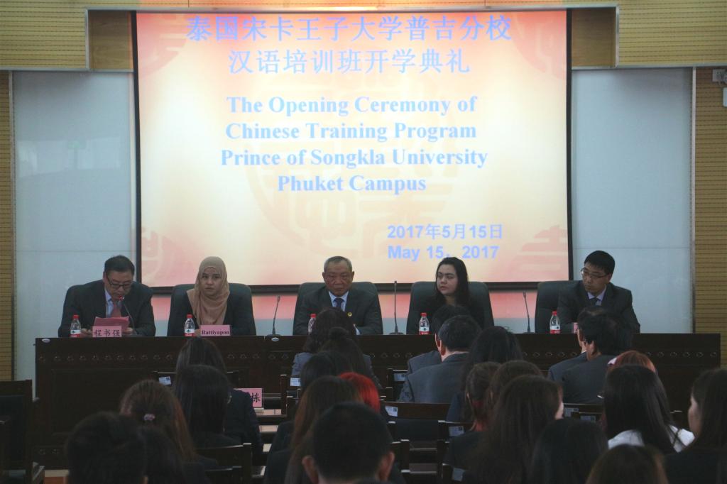 5月15日下午,学校举行泰国宋卡王子大学普吉分校汉语培训班开学典礼。泰国宋卡王子大学普吉分校带队教师Ms. Rattiyapon、教师Ms. Namfon Engchuan,best365党委书记张金安、副院长程书强、校长助理韩小卫、国际合作与交流处处长、教务处处长、汉学院副院长、各二级学院院长和主管教学的副院长等参加典礼。开学典礼由程书强主持。