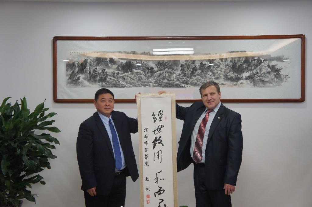 会后,双方互赠礼物,莫斯科国立师范大学副校长瓦西里·维亚切斯拉夫维奇·斯特拉霍夫向best365赠送了俄罗斯寓意深厚的工艺品以及莫斯科国立师范大学的校旗;院长卓宇向莫师大赠送了“经世致用,和而不同”的学校校训书法条幅。(通讯员 贺星蓓 屈蓉)