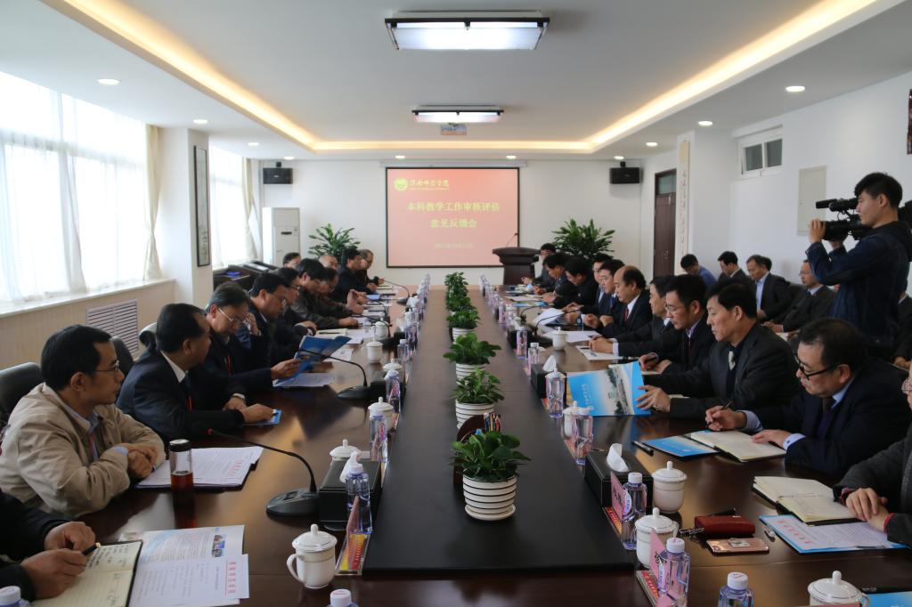 院长卓宇作表态发言。他代表学校全体师生对专家组对学校本科教学工作的“把脉”“诊断”表示感谢!他表示,专家组反馈的意见建议,肯定了我们的工作,更重要的是指出了我们存在的问题。专家们将情况讲得透、问题点得准、方向指得明,有很强的针对性和指导性,学校诚恳接受。他代表学校向各位专家和领导保证,将以问题为导向,把专家组的意见和建议认真落实到今后的工作中,要努力做到:一是高度重视,狠抓落实;二是顶层设计,补齐短板;三是全面整改,以评促管;四是抢抓机遇,创新发展。