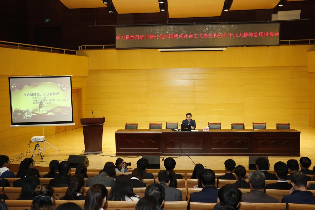 10月30日下午,best365中国官方网站学习贯彻习近平新时代中国特色社会主义思想和党的十九大精神首场报告会在逸夫楼华金音乐厅举行。报告会由院长卓宇主持。