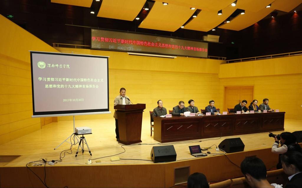 院长卓宇在主持会议时强调,党的十九大是在全面建成小康社会决胜阶段、中国特色社会主义进入新时代的关键时期召开的一次十分重要的大会。学习贯彻习近平新时代中国特色社会主义思想和党的十九大精神,是当前和今后一段时期全党的首要政治任务。全校党员干部要带头学习、带头思考、带头贯彻,学懂、弄通、做实,切实增强政治意识、大局意识、核心意识、看齐意识,在思想上政治上行动上同以习近平同志为核心的党中央保持高度一致;要不忘初心、牢记使命,坚定不移以习近平新时代中国特色社会主义思想为领航导向,把思想和行动统一到党的十九大精神上来;要立足本职工作,抓好贯彻落实,勤于谋事、踏实干事,为推进学校建设特色鲜明的高水平地方师范大学的目标添砖加瓦。