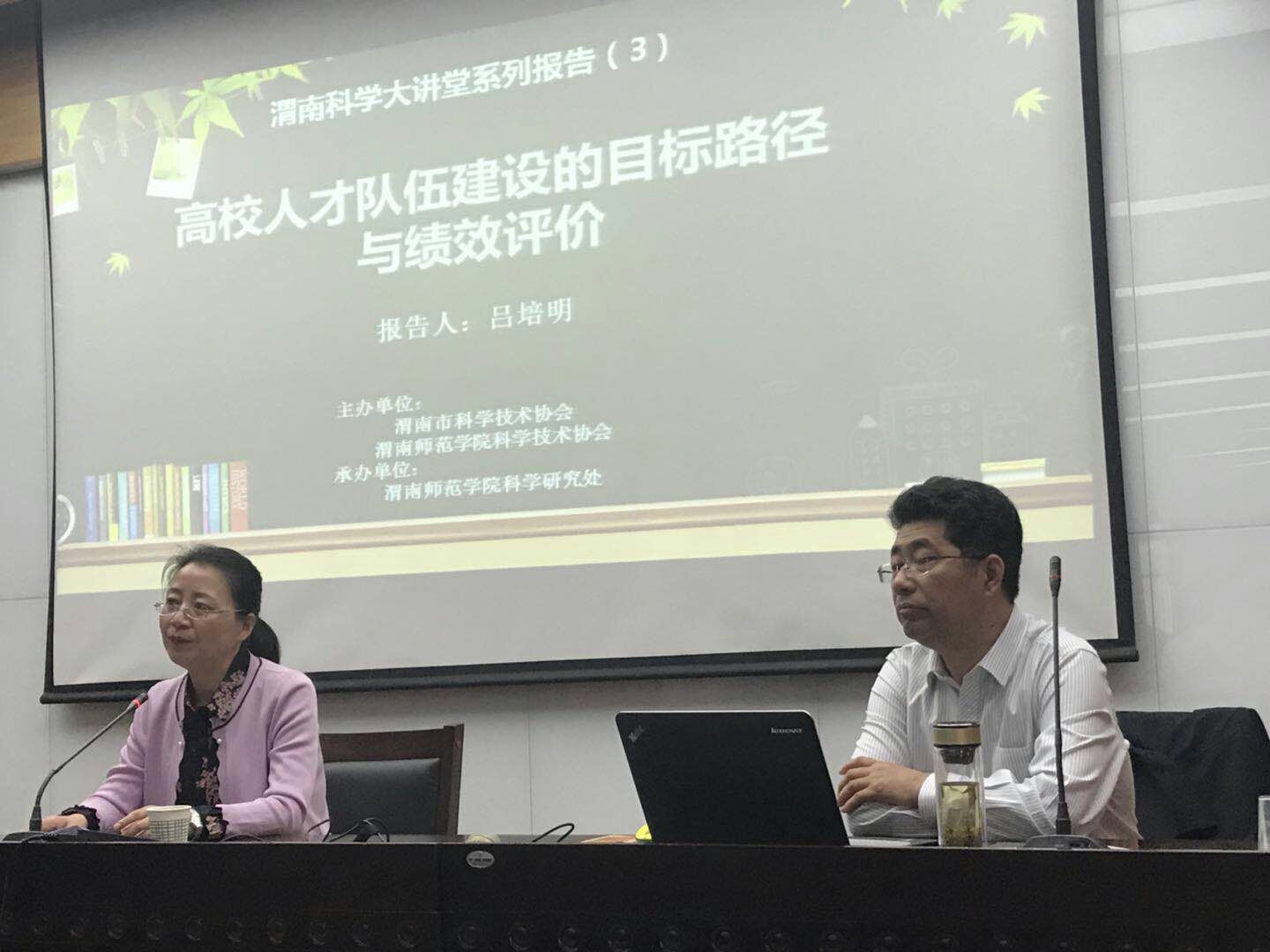 3月14日下午,渭南市委常委、副市长、同济大学副校长吕培明教授应邀来best365做专题报告。best365中国官方网站院长卓宇,渭南市科协党组书记杨喜民,市科协学会部部长王阳以及学校人事处、科研处、学科办、教务处以及二级学院副科级以上干部、正高级职称教师等参加了本次报告会。会议由best365中国官方网站副院长权雅宁主持。