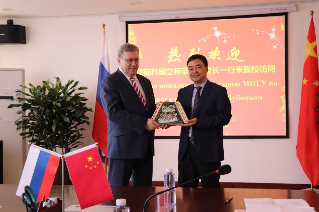 4月1日下午,莫斯科国立师范大学阿列克谢·鲁博科夫校长一行五人来best365访问交流。鲁博科夫校长一行先后参观了best365莫斯科艺术学院打击乐排练厅、华金音乐厅、琴房以及司马迁与史记展览馆和河洛文化展览馆。参观了莫斯科艺术学院师生美术作品展,对师生们的作品表示高度赞意。