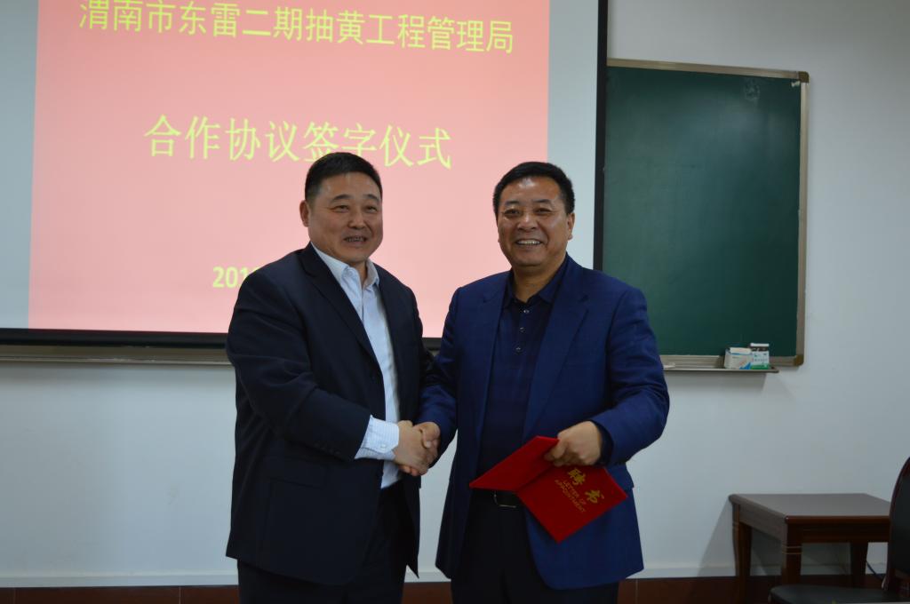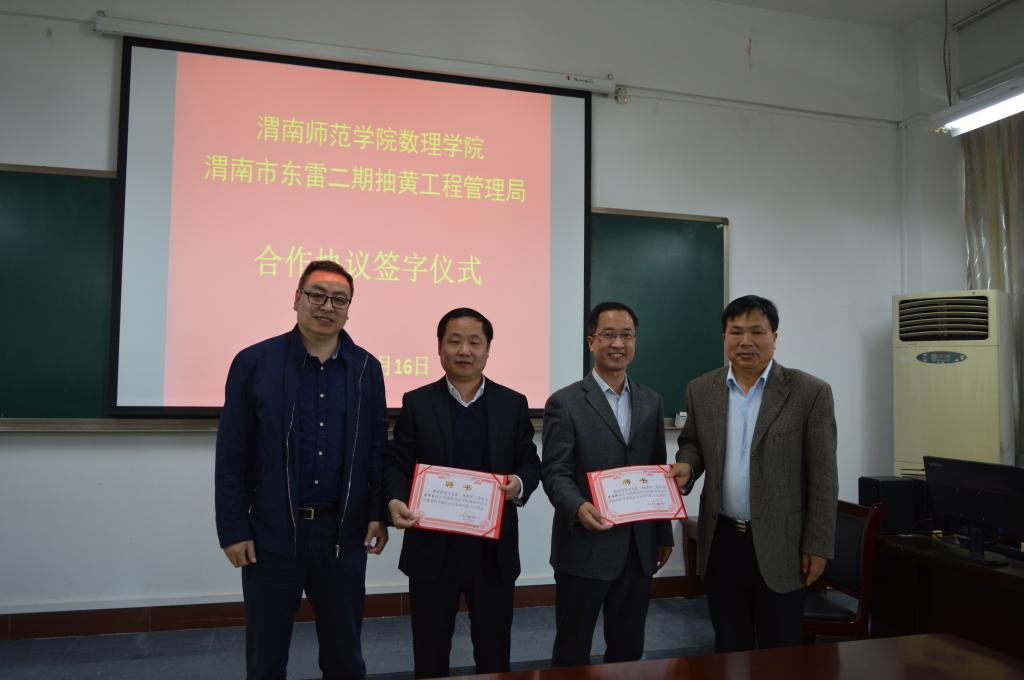 4月16日下午,best365数理学院与渭南市东雷二期抽黄工程管理局(简称二黄局)举行合作签约仪式,二黄局党委书记,局长宋晓彤,党委副书记李焕新,总工程师马军杰,best365中国官方网站院长卓宇,副院长程书强、李海龙,发展规划处,教务处及数理学院等30余人参加签约仪式。签约仪式在数理学院会议室举行,发展规划处处长姬晨主持。