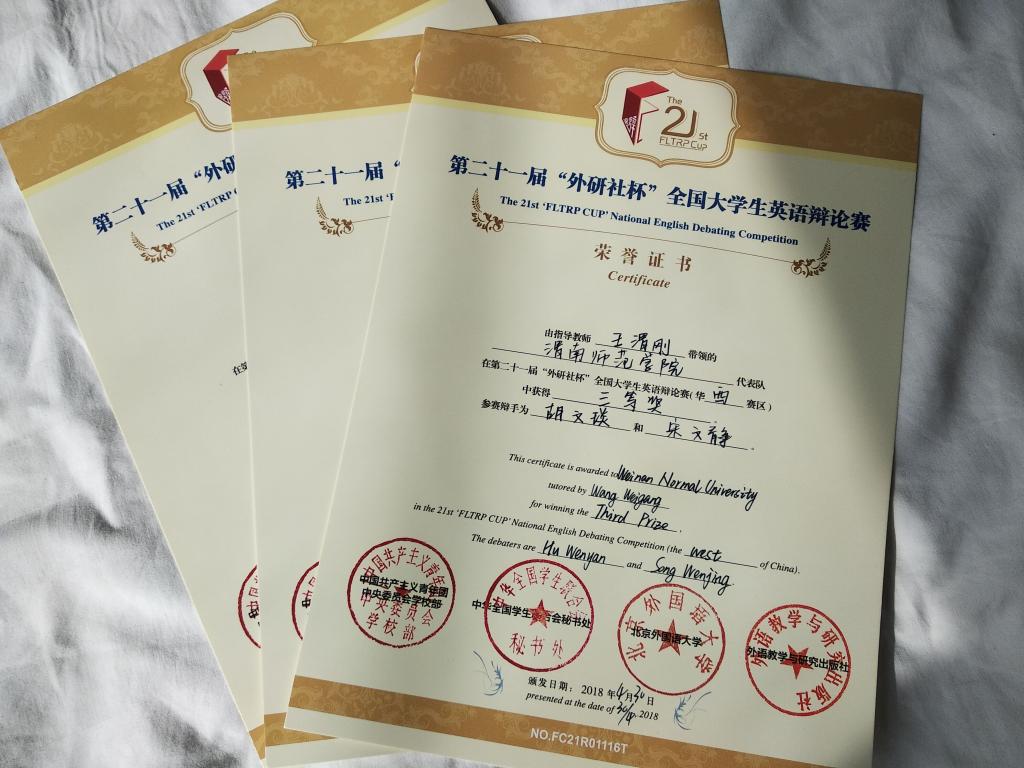 4月28日至30日,第二十一届“外研社杯”全国大学生英语辩论赛华西赛区决赛在兰州交通大学举行。best365外国语学院英语专业学生胡文琰、宋文静,以较强的英语思辩能力和扎实的口语水平荣获三等奖,同时,best365中国官方网站荣获“优秀组织奖”。