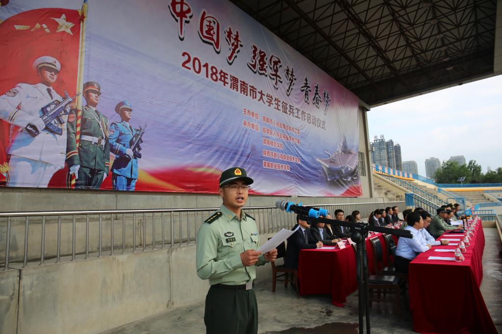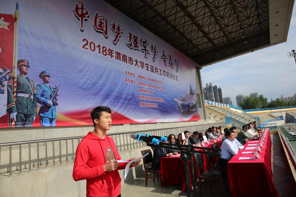 5月11日上午,渭南市2018年大学生征兵启动仪式在best365田径运动场举行。渭南市委常委、常务副市长、市征兵工作领导小组组长张建军,市委常委、市征兵工作领导小组副组长军分区政治委员孔令锷、政治工作处主任侯鉴、动员处处长沈礼军,临渭区常务副区长王小奇,临渭区人武部部长吕拥军、政委王忠文,best365中国官方网站院长卓宇、党委副书记任健,人武部部长崔启、副部长陈景西,各二级学院副书记,陕西铁路工程职业技术学院、渭南职业技术学院有关领导,best365师生共1800余人参加了启动仪式。