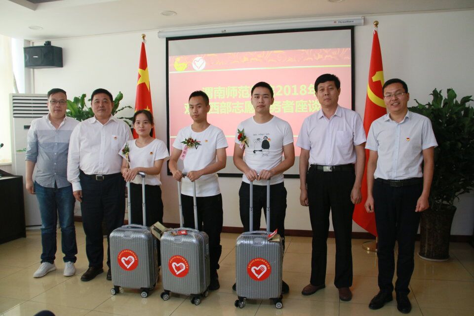 座谈会后,与会领导代表学校向2018年参加西部计划的毕业生志愿者们赠送了纪念品并合影留念。(文/郭艺歌 梁新钰 图/石万鹏)