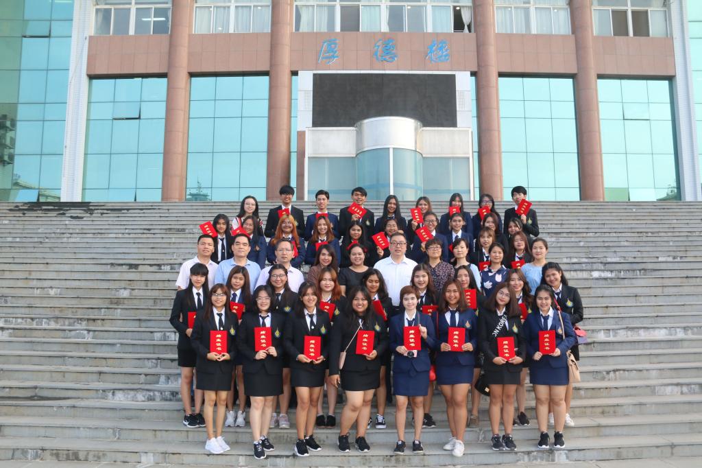 结业典礼结束后,领导、教师与泰国学生在厚德楼前合影留念。